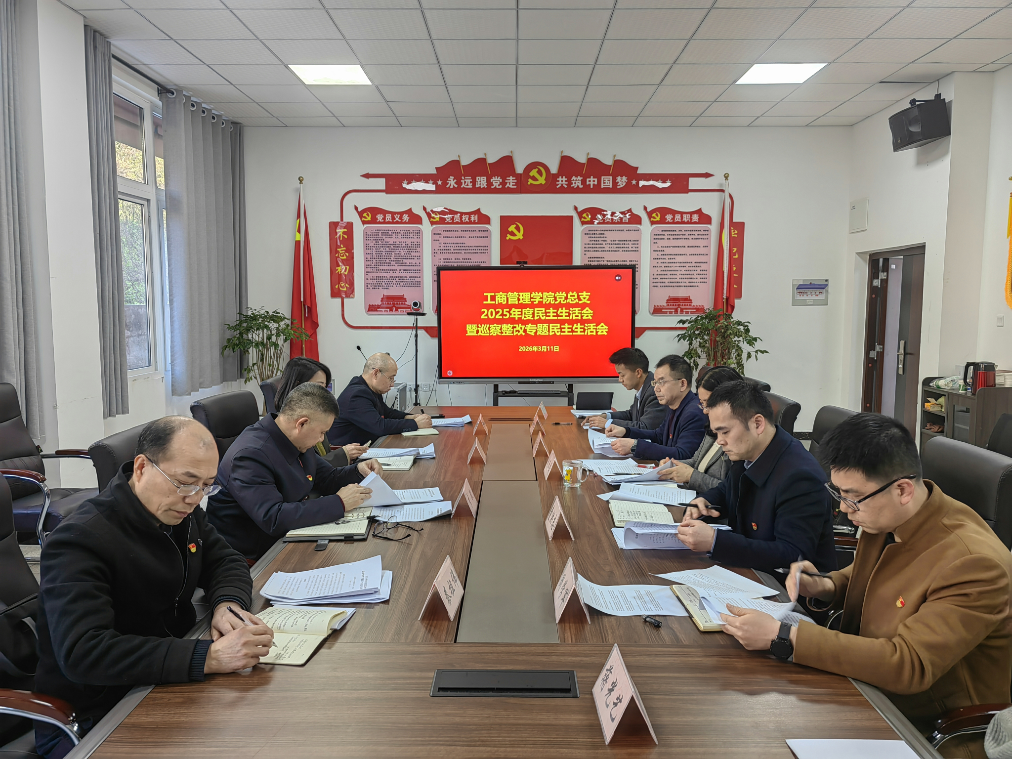3月12日,工商管理学院党总支在博学楼3栋119会议室召开2025年度党员领导干部民主生活会暨巡察整改专题民主生活会。学院党总支书记刘亚兰主持会议,学院领导班子全体成员参加会议。学校党委副书记、校长李敬到会指导。学校纪委委员秦祖伟,党委巡察办公室副主任姜希,学院专职组织员谭力列席会议。