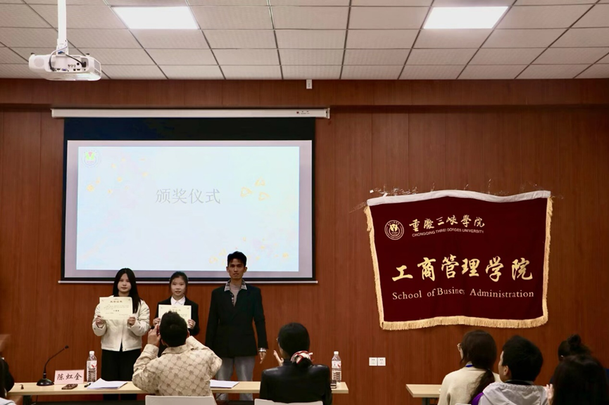 为引导学子明确学习方向、提升就业竞争力,2025年11月9日,工商管理学院举办了第三届大学生职业规划大赛院级选拔决赛。此次院级选拔决赛评委由市场营销系主任陈虹全、专任教师蒋秋华,以及辅导员唐卫、元未霞、段艺林担任。比赛现场,15名参赛选手按成长、就业两大赛道依次展示。根据参赛选手现场表现,结合评委团现场打分,最终,就业赛道中荣获一等奖的是祝梦(研究生)、宋艾星(研究生),荣获二等奖的是向祥凤、张如意,荣获三等奖的是王泽晨(研究生)、周妮;成长赛道中荣获一等奖的是黄文佳、李可欣,荣获二等奖的是李鑫、谭丽丽、李美霖,荣获三等奖的是杨越萍、文叶怜、黄露瑶、贾锦民。