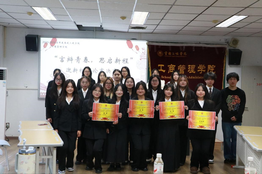 为进一步提升大学生的思辨能力和表达能力,展现学生青春风采,丰富校园文化,2025年11月20日,工商管理学院举办了“言辩青春,思启新程”迎新杯辩论赛决赛。2025级共六个班级参与比赛,辩手们思路清晰、逻辑缜密,现场气氛活跃。经过多轮角逐,2025级工商管理1班获得冠军,2025级工商管理2班、市场营销2班联队获得亚军,2025级跨境电子商务班获得季军,2025级市场营销1班、2025级旅游管理班联队获得优胜奖。