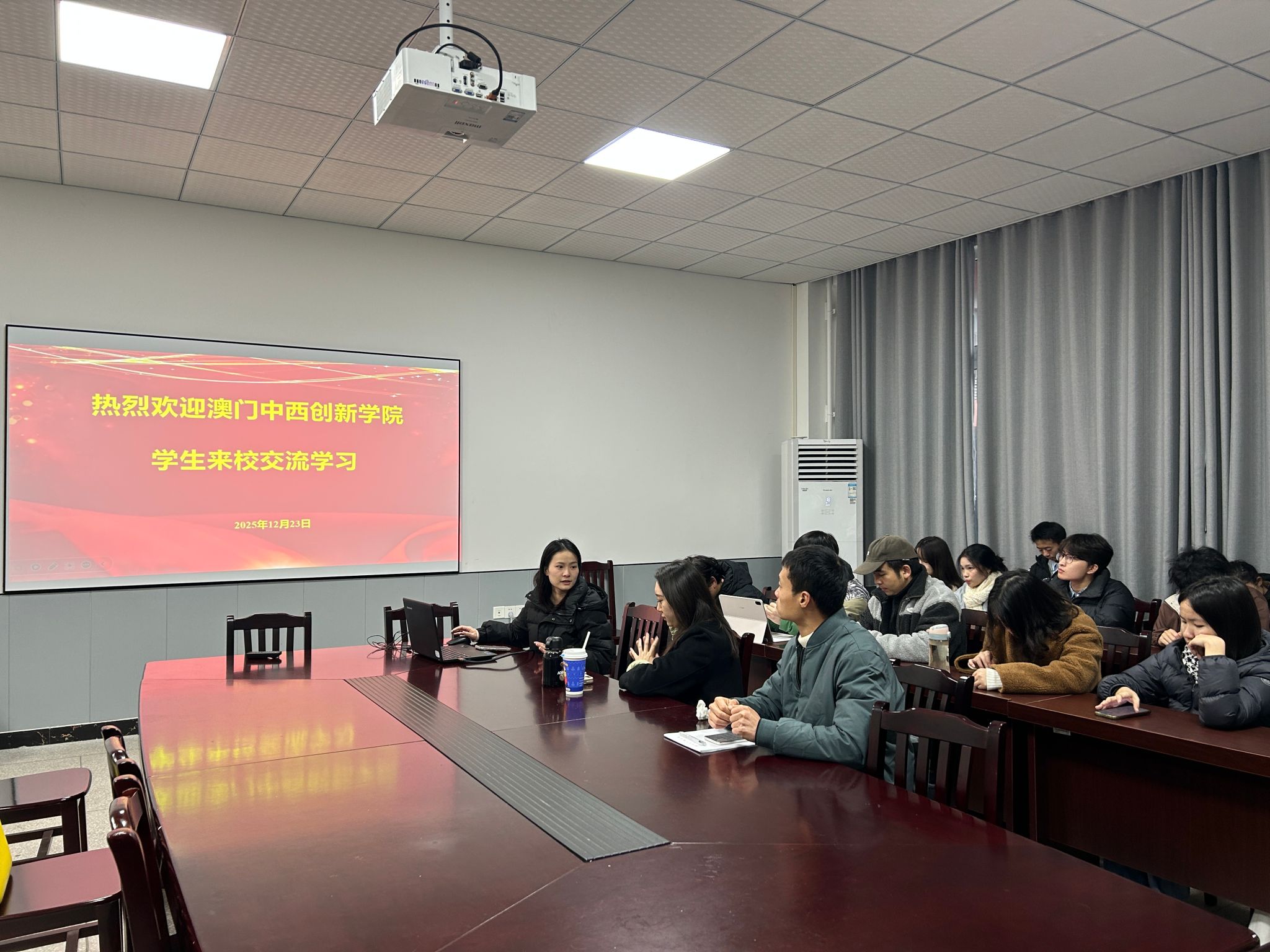 为响应粤港澳大湾区高等教育融合发展号召,深化国际合作与人才培养交流,搭建跨区域学术互鉴平台,12月22日-24日,澳门中西创新学院研究生代表到访我院,开展跨区域学习交流活动。本次交流活动围绕案例分析、学术沙龙及实验室参观三大核心环节展开,推动两校学生之间的深度互动与学术交融。