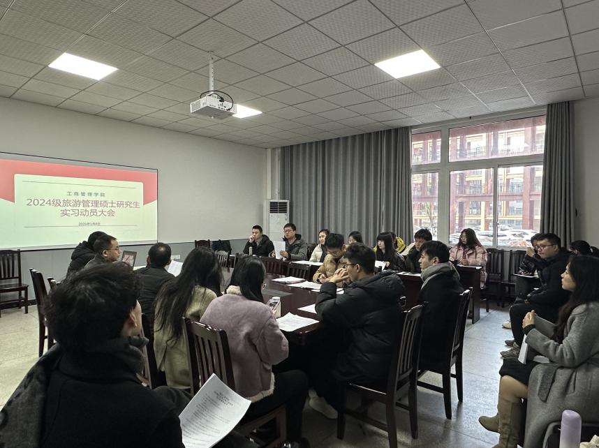 为提高研究生培养质量,扎实做好2027届毕业生高质量就业工作,2026年1月8日,我院2024级旅游管理硕士实习动员会在博学3栋116室召开。学院院长童洪志教授、党总支副书记李中春、实践教学中心主任冉宁副教授、辅导员段艺林、教学秘书毛阿露以及2024级全体硕士研究生参加了此次会议。会议由童洪志主持。